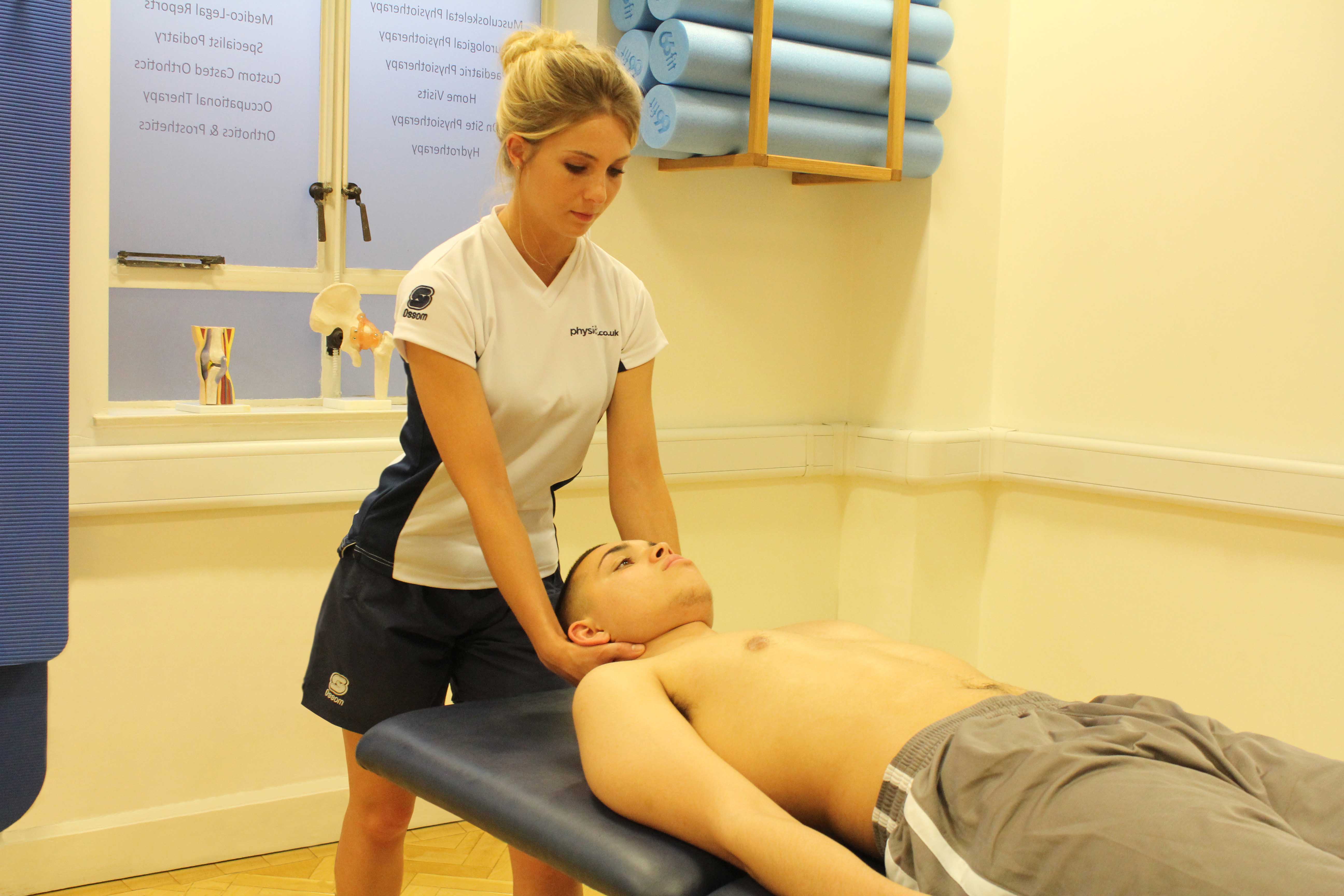 Above: Assessment of the cervical spine, muscles and connective tissues in the neck performed by an experienced PhysiotherapistPlease call Physio.co.uk on 0330 088 7800 or book online to arrange an appointment.